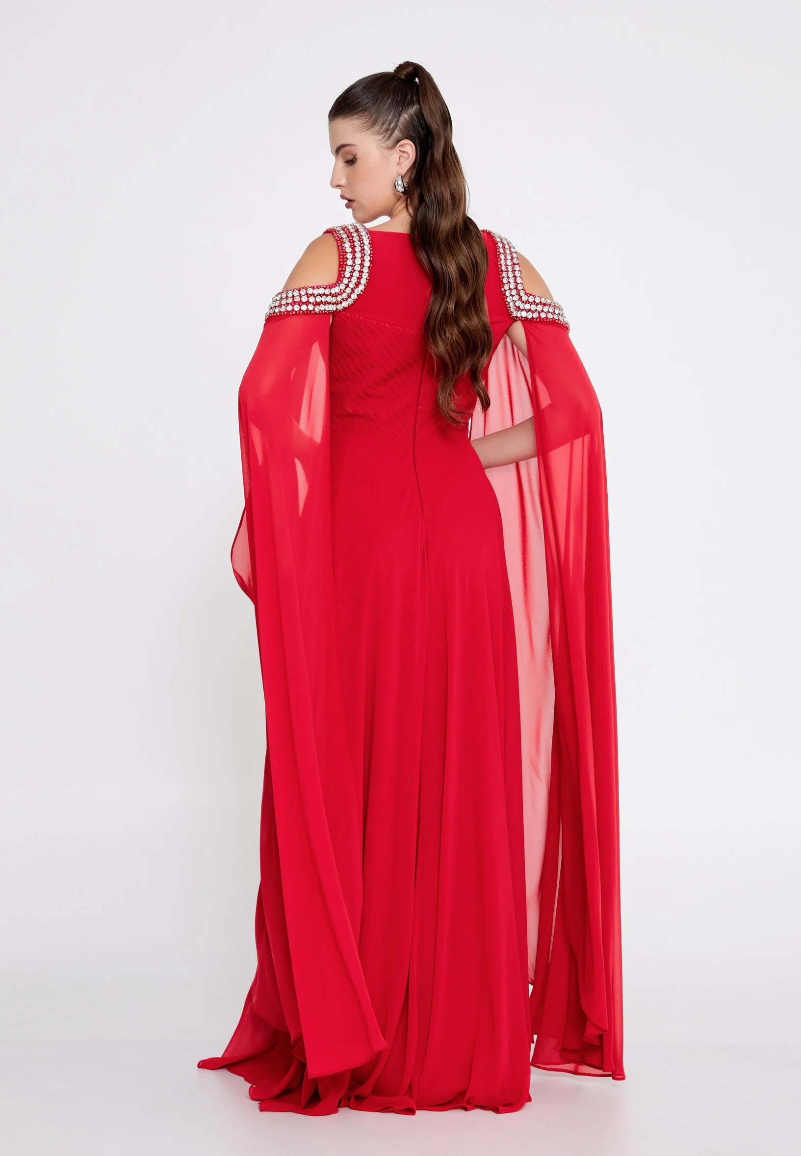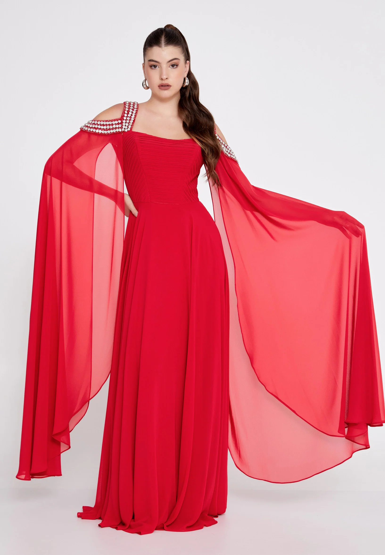Off Shoulder Maxi Chiffon Column Regular Wedding Guest Dress SEE9480