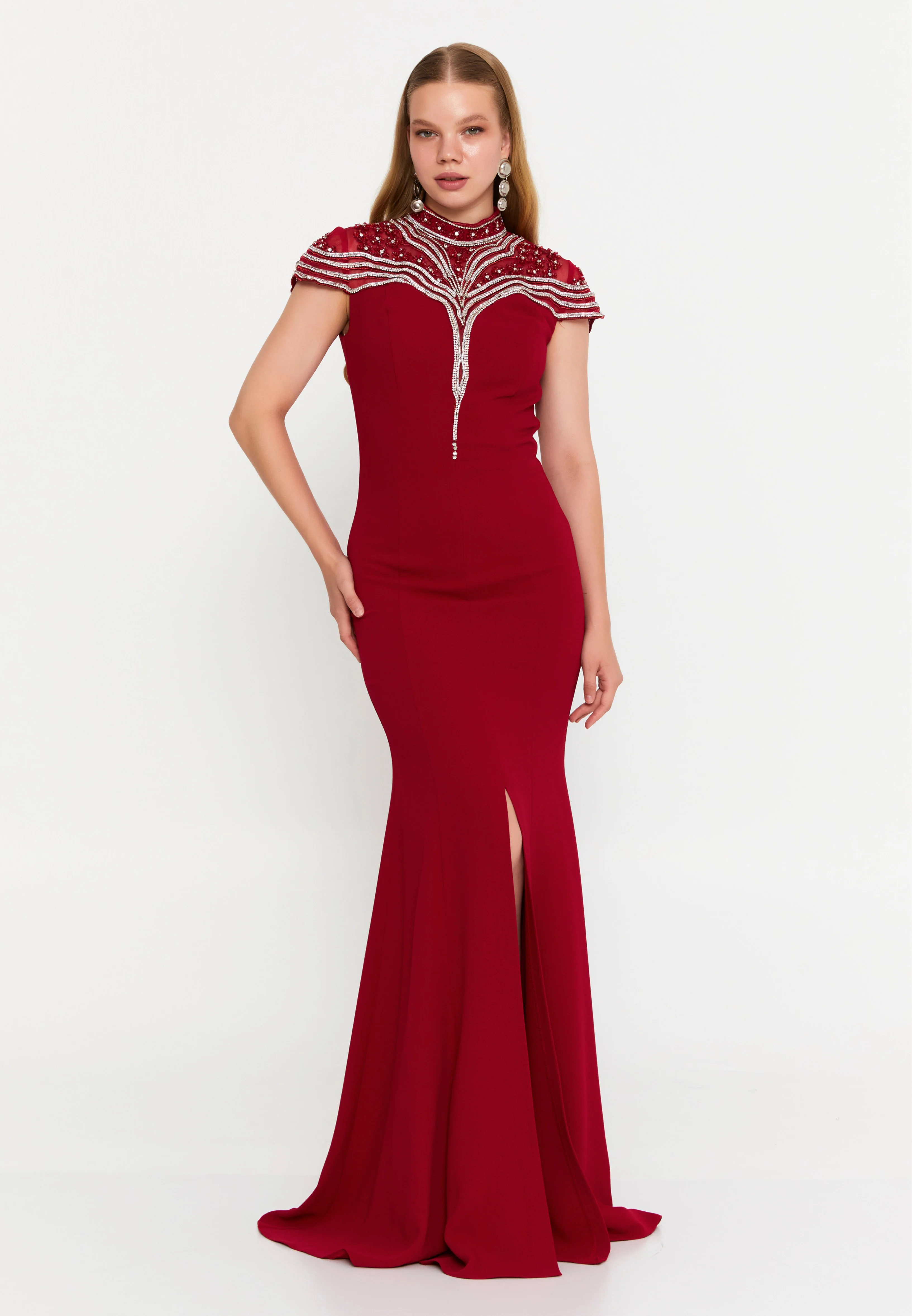 Short Sleeve Maxi Viscose Mermaid Regular Wedding Guest Dress SEE10585